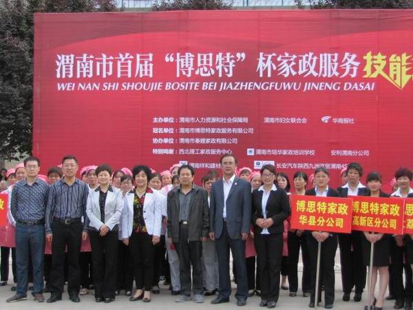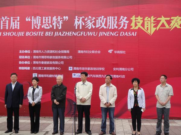陜西省家庭服務(wù)業(yè)協(xié)會會長楊志文、 渭南市組織部副部長、渭南市人力資源和社會保障局黨委書記局長史優(yōu)勝、渭南市婦女聯(lián)合會主席劉莉、市人社局副局長董建明、華商報渭南記者站站長李正善等出席了開幕式。開幕式之后,來自大荔縣、蒲城縣、臨渭區(qū)的7個代表團41名家政服務(wù)人員參加了家庭保潔、養(yǎng)老護理、母嬰護理、家庭禮儀四個項目的比賽,個個出手不凡。他們的出色表現(xiàn),吸引了不少市民觀摩。