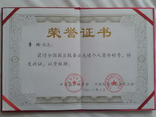 商業(yè)服務(wù)業(yè)先進(jìn)個(gè)人榮譽(yù)證書