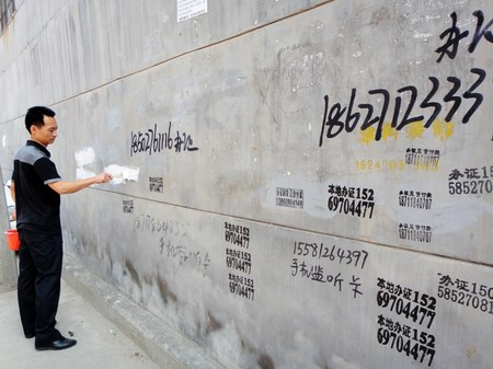 2013年8月31日早上8時(shí),渭南市博思特家政服務(wù)有限公司野廣告清理小組在王德華組長(zhǎng)的帶領(lǐng)下,出動(dòng)10余名行政員工上路清理野廣告。此次活動(dòng)內(nèi)容包括對(duì)渭南市城區(qū)54條路段其中的主、次干道、背街小巷墻體、地面等位置亂涂寫、亂張貼的辦證、貸款等內(nèi)容的野廣告及條幅進(jìn)行全面徹底的清理。這是今年8月份以來(lái),公司進(jìn)行的第四次大型清理活動(dòng)。此次活動(dòng)一是為了迎接9月份市區(qū)領(lǐng)導(dǎo)創(chuàng)文明城市檢查,二是為了檢查、督促和跟進(jìn)城區(qū)主干道的路段負(fù)責(zé)人工作進(jìn)展,但是王組長(zhǎng)說(shuō):“此次活動(dòng)的主要目的還是為了給渭南市民一個(gè)干凈、衛(wèi)生、舒適的城市生活環(huán)境。”