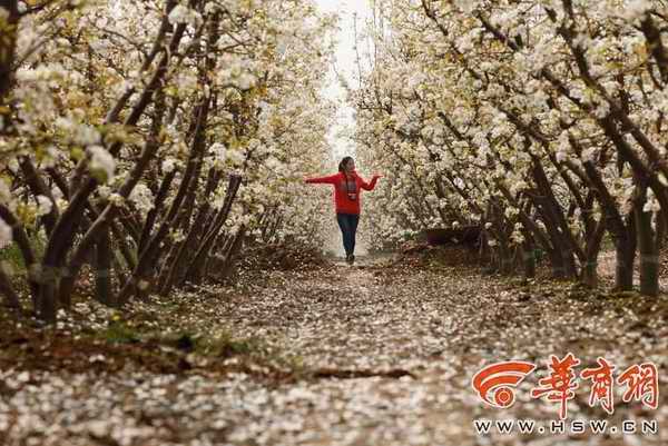 “千樹萬樹梨花開,散落腳下匯成海!边@是記者昨日在蒲城縣黨睦鎮(zhèn)孝東村酥梨種植基地采訪時看到的情景。每年這個時候,那一望無際的白色梨花海,成了該縣絕美的一景。