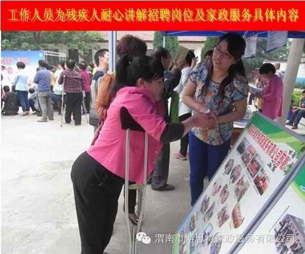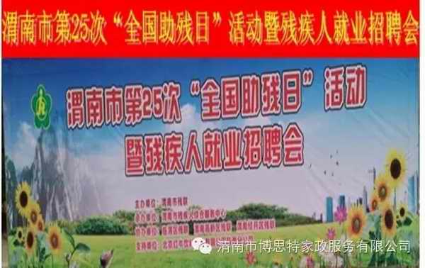 (博思特最新播報)2015年5月17日(周日)上午8:00渭南市殘聯(lián)在市殘疾人綜合服務(wù)中心(香港1號向東100米北)舉辦第25次全國助殘日暨殘疾人就業(yè)招聘會,渭南市博思特家政服務(wù)有限公司、渭南市臨渭區(qū)博愛殘疾人托養(yǎng)中心將前往招聘會進(jìn)行“辦公文員”、“技能按摩”、“中心護(hù)工”等職位招聘!