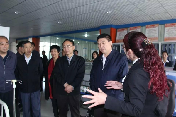 下圖為喬軍局長(右一)、劉新興副市長(右二)現(xiàn)場聽取標準化管理者代表關(guān)于“養(yǎng)老護理”標準化工作匯報之二