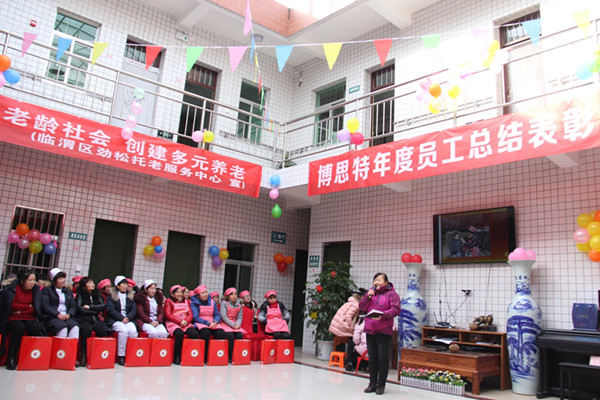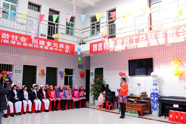 渭南市博思特家政集團(tuán)副總經(jīng)理馮小艷做年度工作總結(jié)報(bào)告并宣讀表彰決定