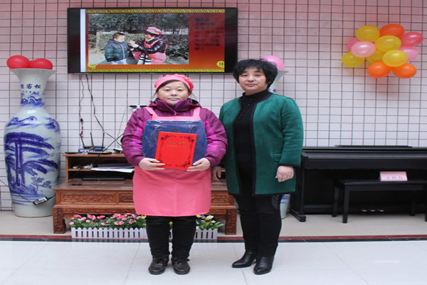 渭南市博思特家政集團(tuán)家政部主管賈芳為參與獎(jiǎng)獲得者黨紅梅、呂軍利兩 組節(jié)目頒發(fā)證書及價(jià)值