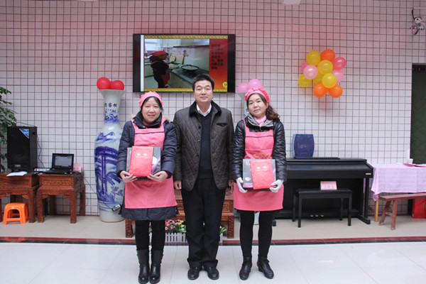渭南市博思特家政集團(tuán)人力資源部經(jīng)理王德華先生為三等獎(jiǎng)獲得者韓彩霞、 肖玲燕、 雷小幸三